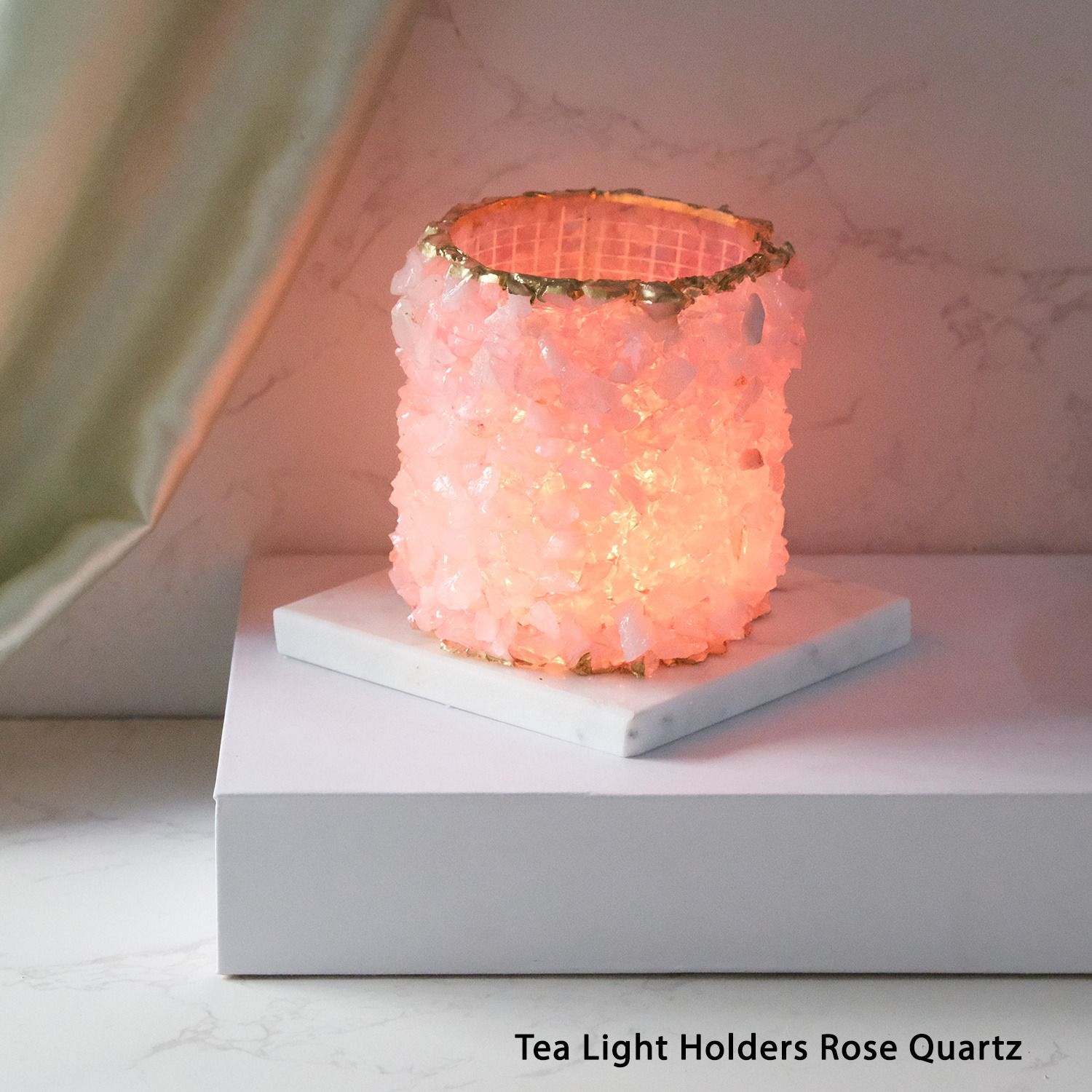 Introducing the Tea Light Holder Rose Quartz, crafted with natural rose quartz for a sophisticated touch to any room. Perfect for creating a calming and peaceful atmosphere, while also adding a touch of elegance. Elevate your space with this beautiful tea light holder.